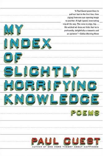My Index of Slightly Horrifying Knowledge is a fierce and original collection—its generosity of voice and emotional range announce the arrival of a major new poet. At the age of twelve, Paul Guest suffered a bicycle accident that left him paralyzed for life. But out of sudden disaster evolved a fierce poetic sensibility—one that blossomed into a refuge for all the grief, fury, and wonder at life forever altered. Although its legacy lies in tragedy, the voice of these brilliant poems cuts a broad swath of whether he is lamenting the potentiality of physical experience or imagining the electric temptations of sexuality, Guest offers us a worldview that is unshakable in its humanity.