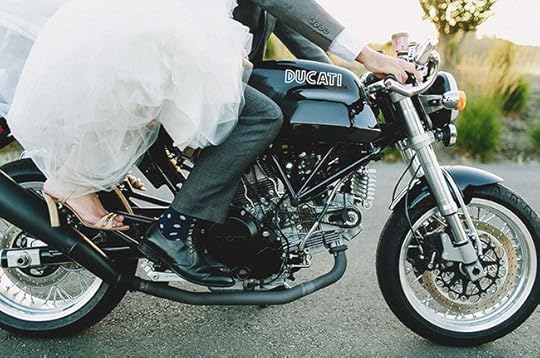 "She came closer to the bike and saw a battered Texas license plate along with a dog-eared bumper sticker that covered part of the worn leather seat. The print had faded, but she could still make out the words.