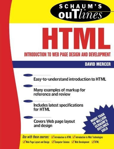 Easy-to-understand introduction to HTML Examples of markup for reference and review Covers web page layout and designUse with these Introduction to HTML Introduction to Web Technologies Web Page Layout and Design Computer Science Web Development HTMLSCHAUM'S OUTLINES OVER 30 MILLION SOLDMaster the fundamentals of HTML with Schaum's the high-performance study guide. It will help you cut study time,hone problem-solving skills,and achieve your personal best on exams and projects!Students love Schaum's Outlines because they produce results. Each year,hundreds of thousands of students improve their test scores and final grades with these indispensable study guides.Get the edge on your classmates. Use Schaum's!If you don't have a lot of time but want to excel in class,this book helps Use detailed examples to solve problems Brush up before tests Find answers fast Study quickly and more effectively Get the big picture without poring over lengthy textbooksSchaum's Outlines give you the information your teachers expect you to know in a handy and succinct format without overwhelming you with unnecessary jargon. You get a complete overview of the subject. Plus,you get plenty of practice exercises to test your skill. Compatible with any classroom text,Schaum's let you study at your own pace and remind you of all the important facts you need to remember fast! And Schaum's are so complete,they're perfect for preparing for graduate or professional exams.Inside,you will The mostrecent specifications forHTML (4. 01) The current and pending specifications for XHTML (1. 0 and 1. 1) Easy to use reference for syntax,semantics,and markup Everything you need to design and build usable,effective web pagesIf you want top grades and a thorough understanding of HTML,this powerful study tool is the best tutor you can have!Chapters Introduction to HTML HTML Page Formatting Basics Advanced Web Page Formatting Web Graphics Basics Advanced Web Graphics Tables and Frames Web Page Forms Cascading Style Sheets and Dynamic HTML Introduction to XHTML Introduction to XML 1. 0 The HTML 4. 01 Tag SetRelated Titles in Schaum's Outlines ComputingAssembly Language Computer Graphics Data Structures with C++Essential Computer Mathematics Fundamentals of Computing with C++Microprocessor Fundamentals,2nd Ed.Programming with Basic Programming with C,2nd Ed.Programming with C++Programming with FORTRAN 77Programming with FORTRAN 90Programming with Java Programming with Modern Structured COBOL,2nd Ed.Programming with Pascal,2nd Ed.Programming with Structured Basic,4th Ed.