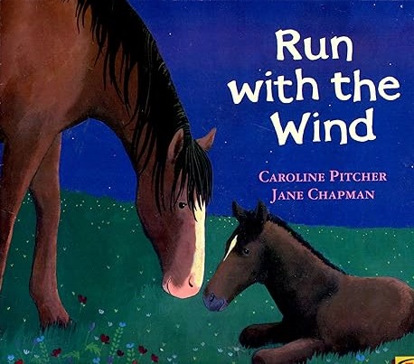 Run with the Wind by Caroline Pitcher, illustrated by Jane Chapman, is a story about a newborn foal who is afraid of the wind and the dark. He is worried that his mother will leave him one day, but she tells him that, without her, he will feel safe. I loved the colorful illustrations. I thought they went well with the story. I think this story would be a great book to read to children to help them get over their fears.