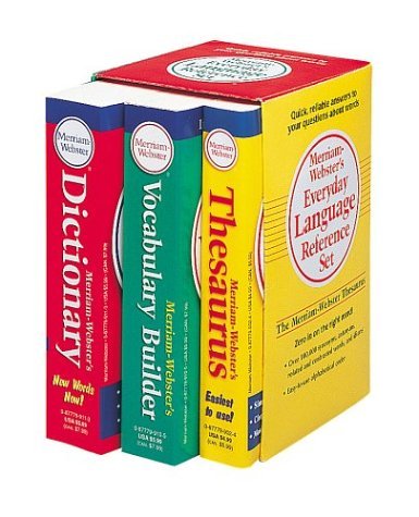 An attractive, affordable reference set. Includes The Merriam-Webster Dictionary, The Merriam-Webster Thesaurus, and Merriam-Webster's Vocabulary Builder.