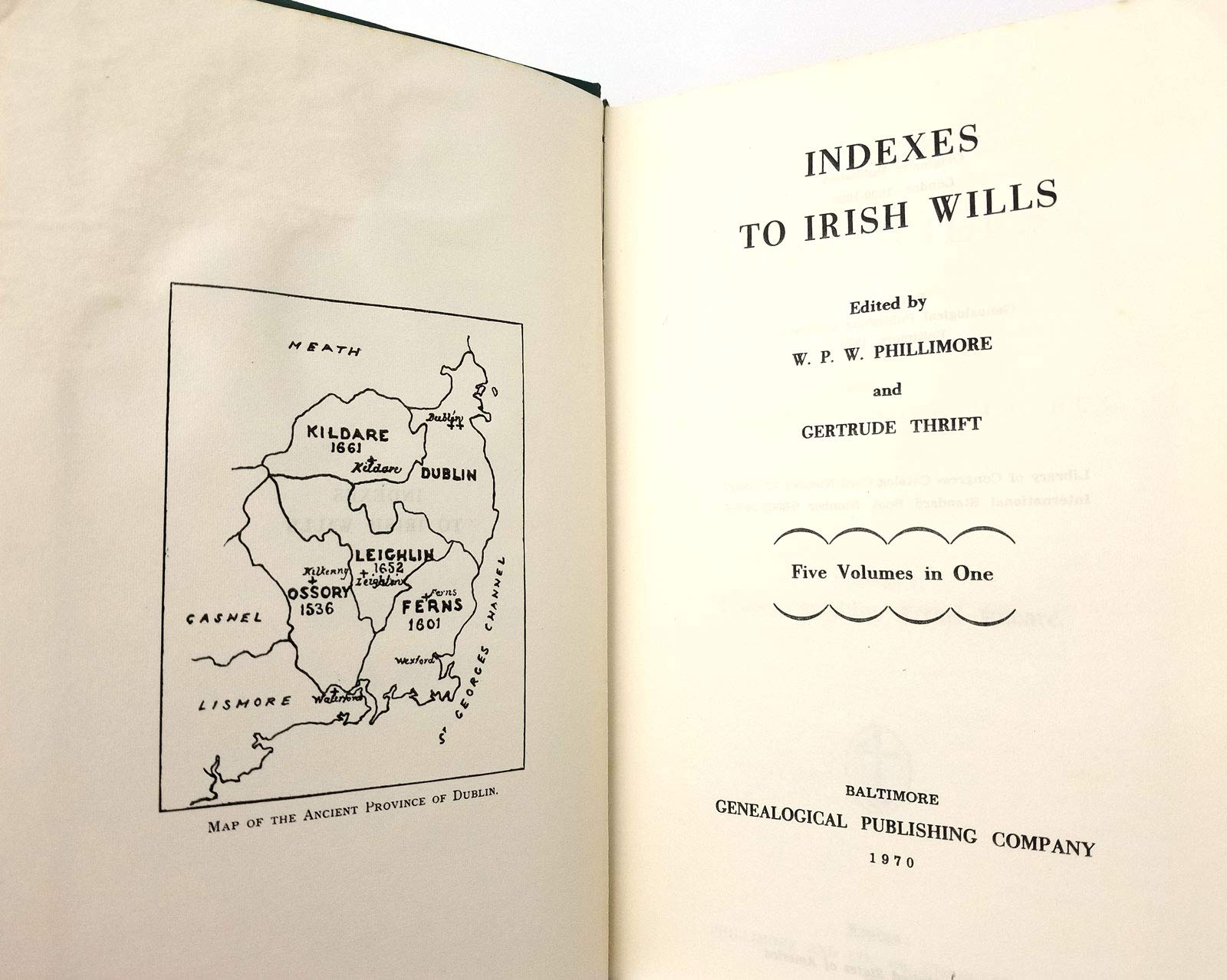 Indexes to Irish Wills is an alphabetical index of over 30,000 Diocesan wills proved in the Consistorial Courts of Ireland between 1536 and 1857. Arranged by Dioceses, and preceded by maps showing in which Dioceses the various Irish counties are situated, the Indexes provide the name of the testator, his parish, county, and the date of probate and are, in short, complete lists of Diocesan wills proved up until 1857, when the various ecclesiastical courts were abolished by Act of Parliament and superseded by the Probate Court. Since the Public Record Office in Dublin was destroyed by fire in 1922, information furnished by this work is very often the only source for determining the social and financial status of an ancestor. These indexes also provide clues for checking land records for an estate partition and transfers of lease from testator to heir. This volume is a perfect companion to Sir Arthur Vicars' Index to the Prerogative Wills of Ireland, 1536-1810. About the William P. W. Phillimore was the editor of the invaluable Parish Register Series. He edited the first two volumes of the Indexes to Irish Wills, the succeeding volumes being edited, after his death, by Gertrude Thrift.