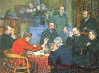 Seated, left to right: Feliz Le Dantec, Emile Verhaeren, Francis Viele-Griffen, Henri-Edmond Cross, Andre Gide, Maurice Maeterlinck.