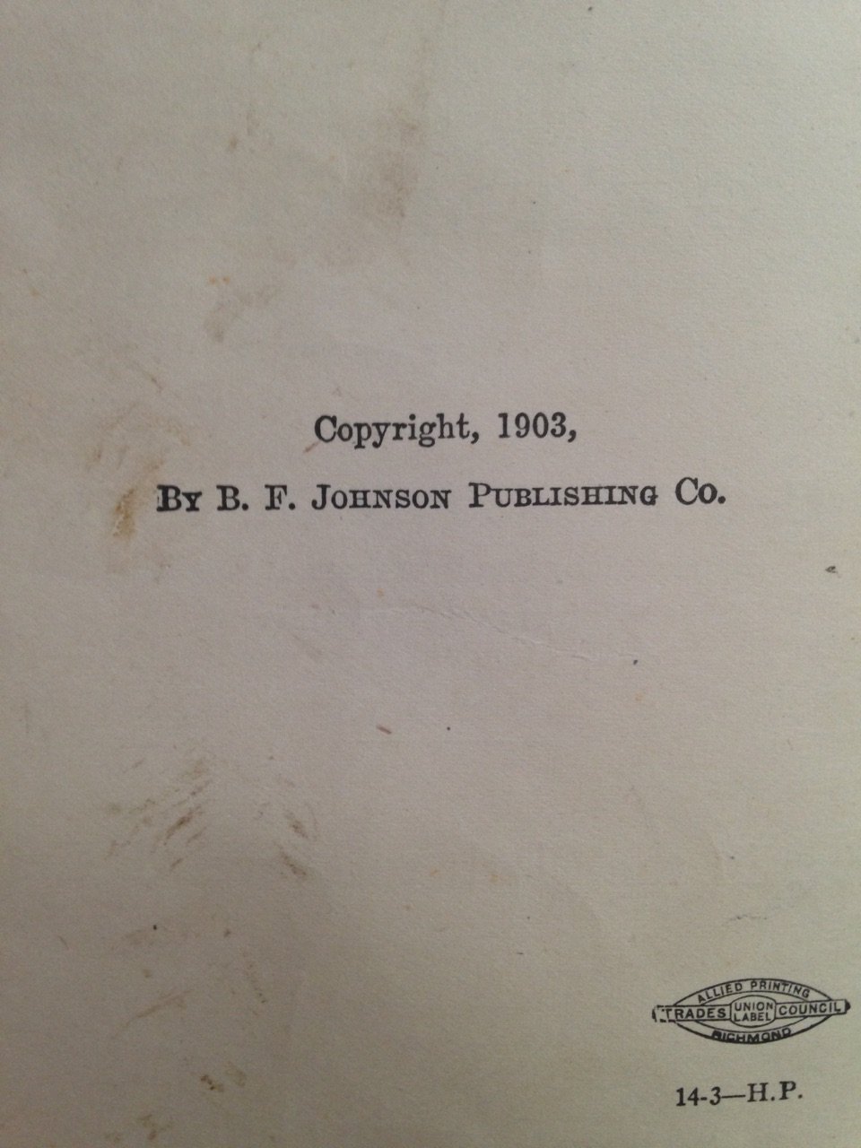 This is an antique hardcover textbook, "Our Language - Third Book - Grammar" by C. Alphonso Smith. For use in the Sixth and Seventh Grades. Texas Edition. 1903, Published by B. F. Johnson Publishing Co. - Atlanta - Richmond - Dallas. 270 pages. Grey cloth covers with Brown lettering and ornamentation on the cover and spine. 7 1/2" x 5 1/2" x 3/4"
