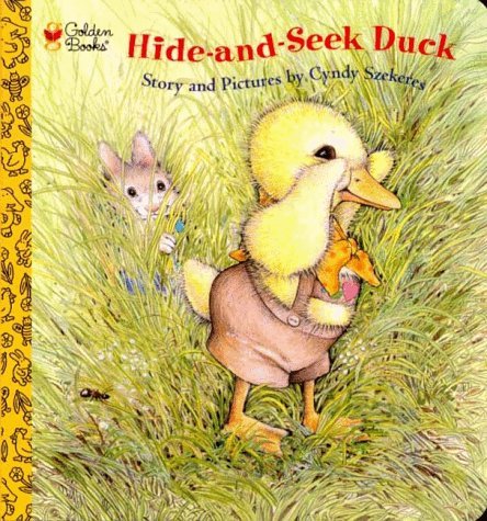 I think my mother gave me Hide-and-Seek Duck and Melanie Mouse's Moving Day. Anyway, it's a typical children's book with cute baby animals wearing clothing playing together blissfully like we parents wish our children would. In this case, the game is hide-and-seek and the seeker is a little duckling, creatively named "Duck."