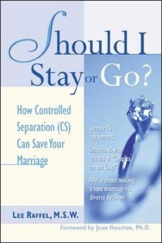 Until now, couples facing the dilemma of deciding whether or not to stay in an unhappy marriage had three individual or couples therapy, separation, or divorce. Should I Stay or Go? provides these couples with a fourth option--the Controlled Separation (CS). Revolutionary in scope, CS is a compassionate process that is designed to build respect and foster advocacy between spouses. Should I Stay or Go? thoroughly explains the CS guidelines, including the 12 fundamental issues that must be resolved for a workable, orderly separation. It also contains sample contracts, along with helpful checklists and self-assessment tools.
