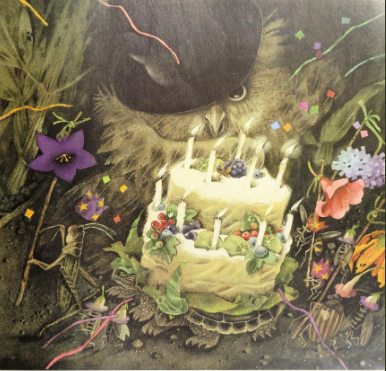 This charming book turned up in my Little Free Library yesterday, on the first truly warm day after a particularly fierce winter, just when I began to see the summer light at the end of the tunnel of school and spring. And what a perfect reminder of warm nights filled with cricket songs, bare feet, and fairy houses, not to mention birthday parties! The story is sweet, and while some of the illustrations verge on chaos, there is much to encourage extended time spent investigating all of the details and imagining more stories for all of the creatures in attendance.