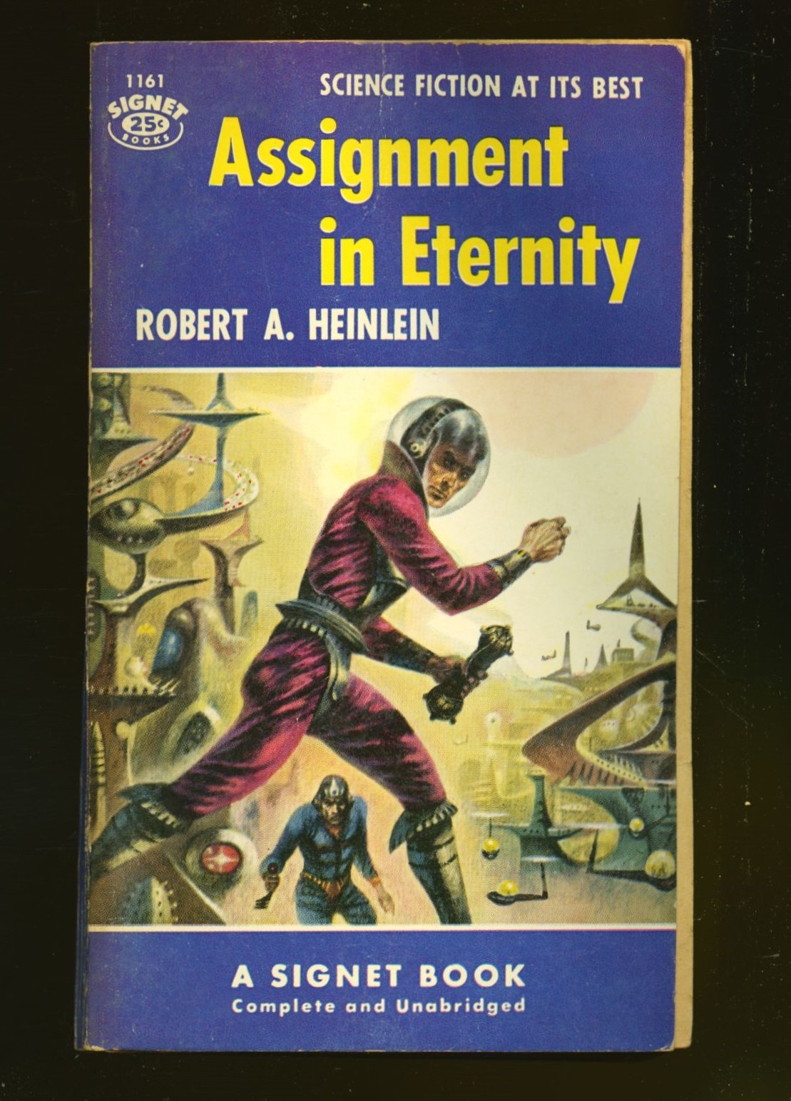 Assignment in Eternity is a collection of four yarns (three longish, one shortish) originally published in SF mags between 1941 and 1949, two under pseudonyms. I had dim memories of the first ("Gulf") and the fourth ("Jerry was a Man"). Of the middle two ("Elsewhen" and "Lost Legacy") I had no recollection whatsoever.