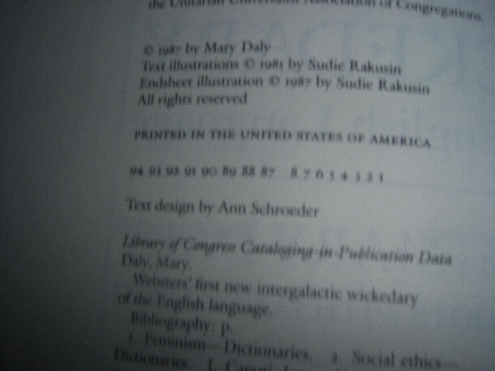 I had read a bunch of other Mary Daly and loved how she played with/reclaimed/invented words, so I was really looking forward to her Wickedary. It is structurally very confusing as a dictionary, because instead of going alphabetically she creates 'word webs' preceded by long prose passages.