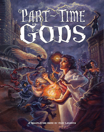 Part-Time Gods You've been gifted with the spark of divinity. Will you give into the power and leave your mortal life behind? Or will you lead a double life and protect those closest to you? Choose wisely - You only have one soul. Part-Time Gods is a roleplaying game where players take the role of ordinary people imbued with the powers of a god. Balancing one's mortal and divine lives can be tricky, and divine responsibility doesn't always pay the rent. Powered by the new DGS-Lite system and packed with plenty of character options, players make any kind of character they can think of and can quickly jump into the world. Includes over 40 antagonists, flexible divine magic and an in depth view of the world from the eyes of the gods.