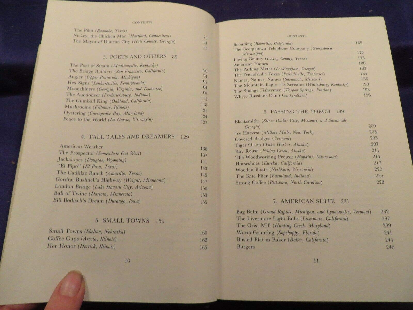 Take this charming book with you on your next trip. The airplane miles or the long airport layover will fly like minutes instead of dragging by hours. Read the list of chapters in the Contents. You can read them out of order if you like because Kuralt doesn't organize chronologically after introducing his life beginnings.