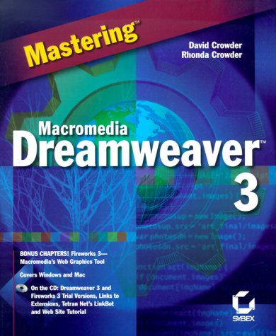 With this new primer, Mastering Macromedia Dreamweaver 3, beginners and intermediate users of Dreamweaver 3 and Fireworks 3 can easily master (that is, get a handle on) the applications' myriad features. Dividing space between Dreamweaver and Fireworks in a two-to-one ratio, the book's main audience will be those who are completely new to creating Web sites, although others may still find it useful in troubleshooting. The chapters follow a natural course. First is a thorough introduction to the work environment, including tools and palettes, followed by site management and Dreamweaver's HTML facilities, creating pages, formatting text, using images, adding links, color, tables, forms, and frames. Next comes using the Library, cascading style sheets, Layers, and JavaScript behaviors. This section will be particularly helpful to intermediate-level readers who have yet to take advantage of some of Dreamweaver's capabilities, for example, sending form information by e-mail.