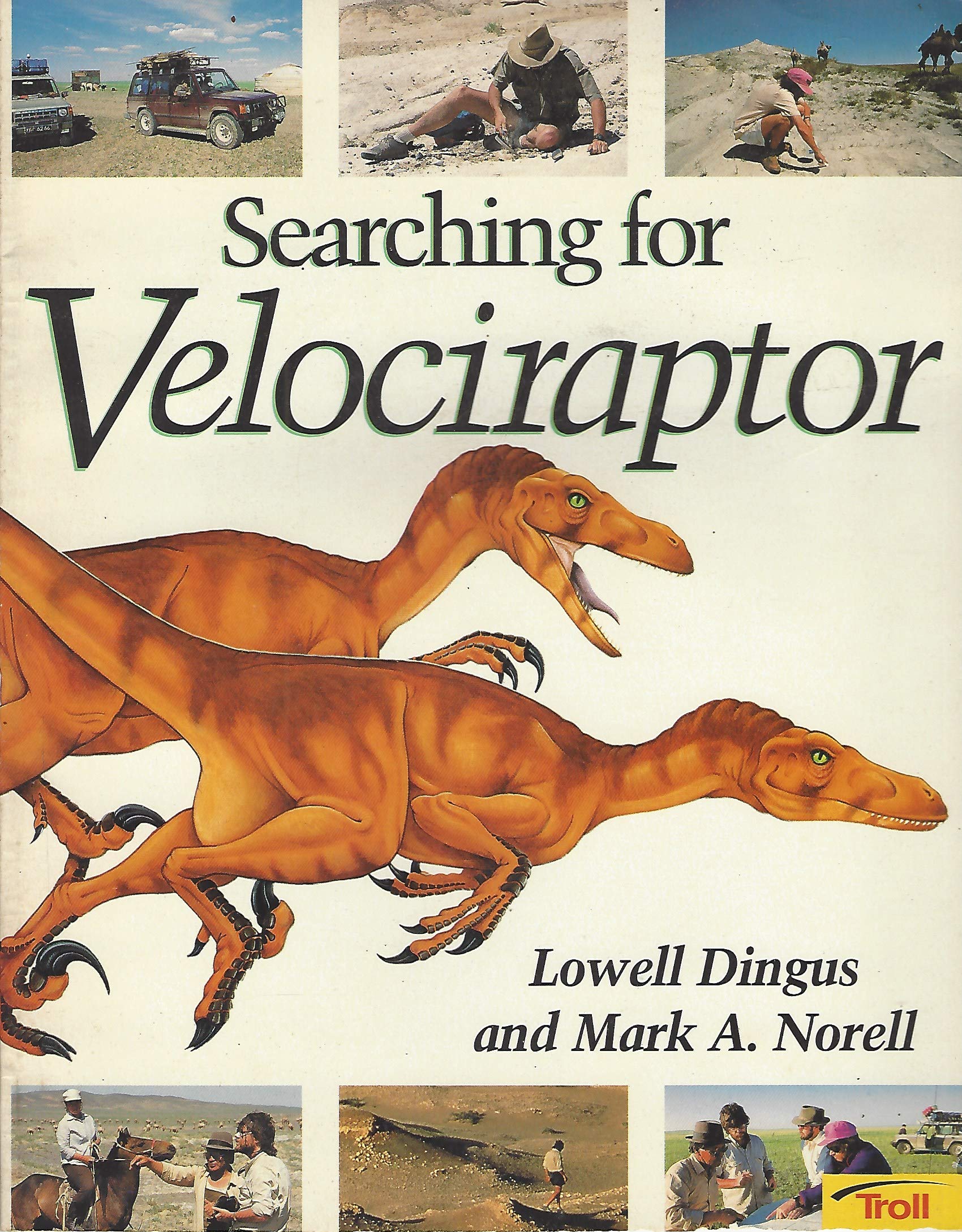 Searching for Velociraptor, a paperback. This book follows the journey of discovery of the authors and paleontologists in 1990 to the Gobi Desert in Mongolia in search of traces of the Velociraptor.