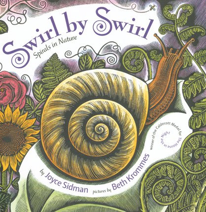 Swirl by Swirl: Spirals in Nature by Joyce Sidman, illustrated by Beth Krommes reveals the many spirals in nature — from fiddleheads to elephant tusks, from crashing waves to spiraling galaxies — but also celebrates the beauty and usefulness of this fascinating shape.