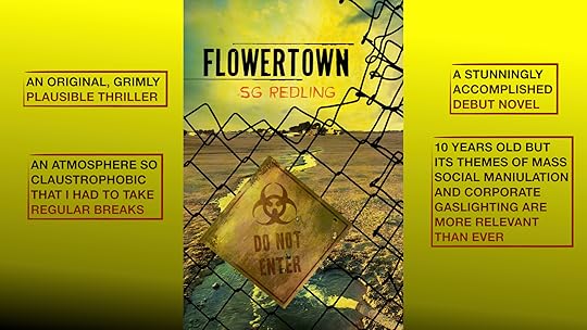 'Flowertown' was S. G. Redling's debut novel. I went looking for it after reading her Science Fiction novel, 'Damocles', an impressive First Contact story with a twist. I was surprised to find that her grimly plausible thriller 'Flowertown', was an even better novel than 'Damocles'.