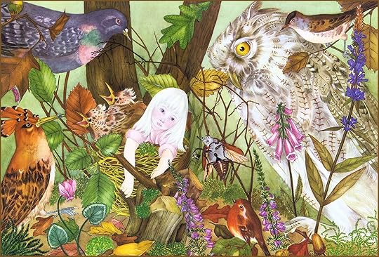 The illustrations in this oversized book (along with, to a lesser degree, The Giant Golden Book of Elves and Fairies) absolutely mesmerized me as a kid. The prose was dark, especially for a Golden Book. But that was nothing compared to the lush, detailed, HAUNTING illustrations of mournful main characters surrounded by wide-eyed, expressionless birds and deer that straight up looked like they'd been taxidermied. (The squirrel and gnome on the cover are two of the only inquisitive and emotionally healthy-looking life forms in the entire collection.)