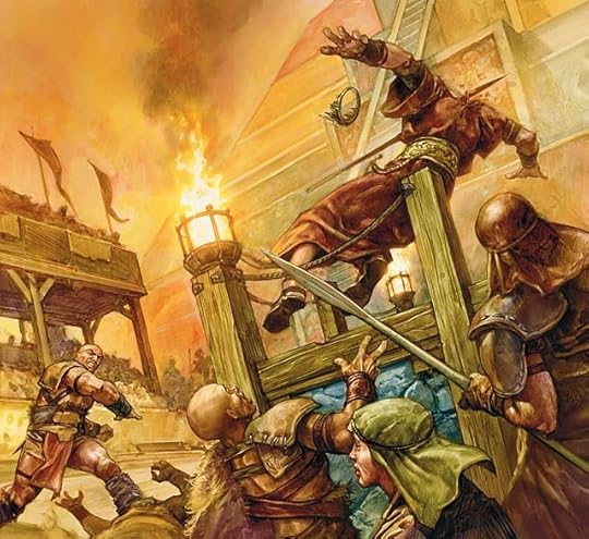 Speaking of story, this one is still a fun yarn. It's pretty classic D&D pulp fantasy, but with an added edge that I always liked about the Dark Sun world. It's harsher, more post-apocalyptic, and savagely cruel than Forgotten Realms or Dragonlance. The class structures, while clearly indebted to ancient Greek & Roman civilizations, also feel relevant to contemporary class warfare and authoritarian politics of our modern age. The differences are in the particulars, but the broad parallels still resonate. And I appreciate how magic is connected to the natural world in a way that feels uncomfortably relevant in our current moment of environmental degradation and climate crisis. We see lots of implications and room for further learning, but this single volume is not interested in creating some sprawling global epic. It's instead rather focused: people are oppressed, the leader is bad news and planning something even worse, so a plucky band of misfit companions tries disposing of said leader. End of story. No grand cosmic stakes. No Saving The Whole World. Just straight-forward adventure in one city among many. Not bad. I like it. Certainly there will be more to this story--it's part of a series and a world, after all--but it's not trying to do too much. And the structure of future entries in the series maintains a pretty good focus that is a breath of fresh air when compared to other series with casts of hundreds, and thirty different narrative strands all interwoven and bouncing around. All that convolution is exhausting, and the payoff far less than we really think. Such works are the all-you-can-eat buffet of fantasy lit and I'm rarely impressed by it.