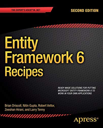 Entity Framework6 Recipes provides an exhaustive collection of ready-to-use code solutions for Entity Framework, Microsoft'smodel-centric, data-access platform for the .NET Framework and ASP.NET development. With this book, you will learn the core concepts of Entity Framework through a broad range of clear and concise solutions to everyday data access tasks. Armed with this experience, you will be ready to dive deep into Entity Framework, experiment with new approaches, and develop ways to solve even the most difficult data access challenges. If you are a developer who likes to learn by example, then this is the right book for you. Gives ready-to-use, real-world recipes to help you with everyday tasks Places strong focus on DbContext and the Code First approach Covers new features such as Asynch Query and Save, Codebased Configuration, Connection Resiliency, Dependency Resolution, and much more What you'll learn Implement basic data access design patterns using Entity Framework. Seamlessly model your solutions across both code and data. Provide data access to Windows 8 and Metro applications. Integrate with WCF Data Services Improve data access performance. Simplify and reduce your code through data binding. Who this book is forEntity Framework 6 Recipes is for anyone learning Microsoft's Entity FrameworkMicrosoft's primary data access platform in the .NET Framework. If you have ever struggled to learn a new technology, programming model, or way of doing something, you know how helpful simple and real-world examples can be. For the beginning developer, this book provides concrete examples for common data access tasks. For developers having experience with previous Microsoft data access platforms, this book provides a task-by-task mapping between previous approaches and the patterns used in Entity Framework. Table of Contents Getting Started with Entity Framework Entity Data Modeling Fundamentals Querying an Entity Data Model Using Entity Framework in ASP.NET Loading Entities and Navigation Properties Beyond the Basics with Modeling and Inheritance Working with Object Services Plain Old CLR Objects Using the Entity Framework in N-Tier Applications Stored Procedures Functions Customizing Entity Framework Objects Improving Performance Concurrency