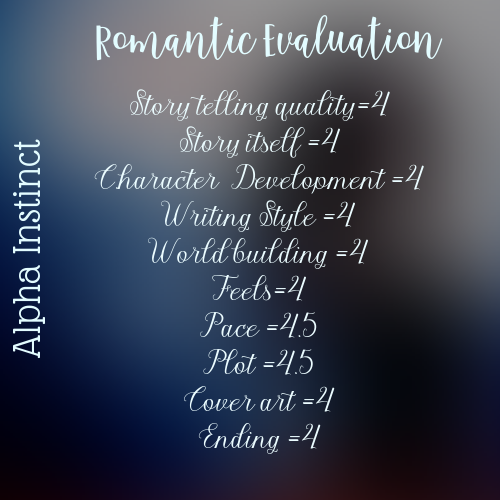 Overall I found Alpha Instinct to be a powerfully portrayed romance that takes us to the woods, the suspense that engages you and a sexy filled love story to give you all the feels!