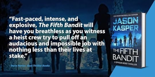 The Fifth Bandit is the final installment of the electrifying Spider Heist Thrillers series by USA Today bestselling author Jason Kasper. They’ve broken into safes and out of prison, but their greatest heist may be their last. The Sky Thieves have conquered their worst enemy. Now they face an even greater the ruthless mentor who brought him to power. Uncovering the mentor’s identity is their first step to staying out of jail and exercising their own personal brand of justice―by stealing from the mentor's incalculable wealth. But they aren’t the only ones looking for clues, as their new opponent activates a vast web of connections to hunt them down. The game is rigged against the Sky Thieves―until a last-minute partnership with an unlikely ally gives them the key to their enemy’s most valuable assets. In the race to free themselves from a powerful opponent, the crew must undertake their most daunting heist yet...with their lives hanging in the balance. ________________________ Praise for Jason Kasper and the Spider Heist "My heart was in my throat until the very end, and once I reached the last word, all I wanted was more." ―Lisa Regan, USA Today and WSJ Bestselling Author "Jason Kasper weaves a masterful page-turner with The Spider Heist, starring his irresistible new character, Blair Morgan. If you like action, intrigue, suspense, and thrills, read this book." ―Jeff Carson, Bestselling Author of the David Wolf Mystery Series "Outstanding! Jason Kasper spins an intricate web of clues, second-guesses, and action around a cast of memorable characters that will keep readers hooked from the first page to the final twist. I dare you to try and put it down." ―LynDee Walker, Agatha Award-Nominated Author of the Nichelle Clarke Series "I flew through The Spider Heist. It's packed with action, twists, and laughs. Kasper wields excitement like a hammer, and he bashes you over the head with it, again and again." ―LT Vargus, Co-Author of the Violet Darger Series "...a tour-de-force of high stakes thriller action, unexpected twists, and nail-biting suspense. An unforgettable roller coaster ride that leaves you guessing until the end." ―Steven Konkoly, USA Today Bestselling Author of the Ryan Decker Series "Twists and turns with an incredibly likable heroine―I loved it." ―A.G. Riddle, International Bestselling Author of The Atlantis Gene