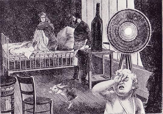 Mimoso, Redux: The taxidermist finally has Mimoso ready. “He had never looked in better health. He was fat, well-brushed, and shiny, the only thing he couldn’t do was talk. Mercedes caressed him with trembling hands, tears burst from her eyes and fell on the dog’s head.” Her husband asks the taxidermist how he accomplished such a miracle. The taxidermist replies he did the whole job with poison, his own particular system of working. However, not to worry: the only way the poison could do any harm is if someone were to eat the embalmed dog. Ha! No comment.