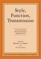 Darwin's theory of evolutionary descent with modification rests in part on the notion that there is heritable continuity affected by transmission between ancestor and descendant. It is precisely this continuity that allows one to trace hylogenetic histories between fossil taxa of various ages and recent taxa. Darwin was clear that were an analyst to attempt such tracings, then the anatomical characters of choice are those least influenced by natural selection, or what are today referred to as adaptively neutral traits. The transmission of these traits is influenced solely by such mechanisms as drift and not by natural selection. The application of Darwin's theory to archaeological phenomena requires that the theory be retooled to accommodate artifacts. One aspect that has undergone this retooling concerns cultural transmission, the mechanism that affects heritable continuity between cultural phenomena. Archaeologists have long traced what is readily interpreted as heritable continuity between artifacts, but the theory underpinning their tracings is seldom explicit. Thus what have been referred to as artifacts styles underpin such tracings because styles are adaptively neutral. Other traits are referred to as functional. In their introduction to Style, Function, Transmission , Michael O’Brien and R. Lee Lyman outline in detail the interrelations of a theory of cultural descent with modification and the concepts of drift, style, and function. The chapters in the volume specifically address the issues of selection and drift and their relation to style and function. In non-polemic presentations, contributors specify empirical implications of aspects of cultural transmission for evolutionary lineages of artifacts and then present archaeological data for those implications.