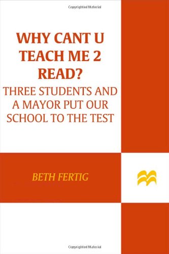 I discovered Beth Fertig's "Why cant U teach me 2 read?: Three Students and a Mayer Put Our Schools to the Test" on the new non-fiction release shelf at my local library and was instantly intrigued at the subject of this book. I was also appalled by the idea of going through a public school education and coming out of it not being able to read. I know that this happens (probably a lot more than I'm able or willing to realize), but it is just so difficult for me to wrap my mind around. I grew up in a small town in upstate New York. Class sizes were small. Parents were involved. Teachers did their jobs. No one was really left behind, at least not to my knowledge (no pun intended on Bush's No Child Left Behind or NCLB policy). Also, I'm not a teacher, nor do I work with children or even have any of my own. I'm just interested in the subject of literacy. I figured it would be quite a learning experience.