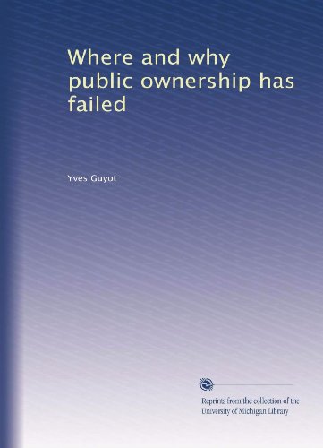 This is a reproduction of a book published before 1923. This book may have occasional imperfectionssuch as missing or blurred pages, poor pictures, errant marks, etc. that were either part of the original artifact,or were introduced by the scanning process. We believe this work is culturally important, and despite the imperfections,have elected to bring it back into print as part of our continuing commitment to the preservation of printed worksworldwide. We appreciate your understanding of the imperfections in the preservation process, and hope you enjoy this valuable book.++++The below data was compiled from various identification fields in the bibliographic record of this title. This data is provided as an additional tool in helping to ensure edition Where And Why Public Ownership Has Failed Yves Guyot Harriet Franc Baker The Macmillan company, 1914 Government ownership; Industrial policy; Municipal ownership