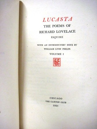 LUCASTA (1921, 2 VOLS. IN SLIP CASE) The Poems of Richard Lovelace