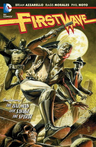 Story First Wave is what I find to be a very interesting book when Batman or should I say Bat-man, the Spirit, Doc Savage, the Avenger, and the Blackhawk's rally up to find out about the Golden Tree. Anton Colossi a businessman seeking a deal with Wayne enterprises to help create a paradise and destroy the modern world. The Golden Tree is a criminal organization seeking world war III founded by Colossi. Every target of the Golden Tree is killed by Ferrios a robot man. The thing I like about the first wave is it a Noir setting which for the most part fits all the characters sure a remote paradise, robot man, and WWIII aren't Noir like, but Batman using guns and him being more of a detective, not a superhero and the Spirit is the same way. It gives those characters a setting that suits them extremely well. I also found included in the First Wave the "Bat-man Doc Savage Special," Doc Savage investigates a murder of a crime lord because Commissioner Gordon believes the Bat-man killed him but after Savage encounters Bat-man he learns it wasn't Bat-man because Bat-man caries Forty-Fives the criminal was shot with a Sixty-Five.