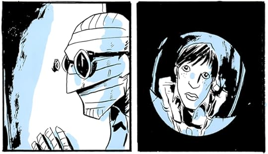 It's a slightly pulpy story with the comics covers included in the book accentuating this - "Why?! Is This Bandaged Stranger Terrorizing This Small Town?" with its retro style cover design. But it's a brilliant story told masterfully in black, white and blue, and lushly produced in hardback, I really loved it and think Lemire's developing into a really interesting graphic novelist. It's a great read and an inspired take on an old story.