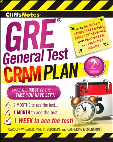 Get a plan to ace the exam—and make the most of the time you have left. Whether you have two months, one month, or even just a week left before the exam, you can turn to the experts at CliffsNotes for a trusted and achievable cram plan to ace the GRE General Test—without ever breaking a sweat! First, you'll determine exactly how much time you have left to prepare for the exam. Then, you'll turn to the two-month, one-month, or one-week cram plan for week-by-week and day-by-day schedules of the best way to focus your study according to your unique timeline. Each stand-alone plan Diagnostic test–helps you pinpoint your strengths and weaknesses so you can focus your review on the topics in which you need the most helpSubject reviews–cover everything you can expect on the actual text completions, sentence equivalences, vocabulary, reading comprehension, analytical writing, arithmetic, algebra, geometry, and applications Full-length practice test with answers and detailed explanations–a simulated GRE exam gives you an authentic test-taking experience Test-prep essentials from the experts at CliffsNotes Reflects changes to the latest GRE General Test Make the most of the time you have left!