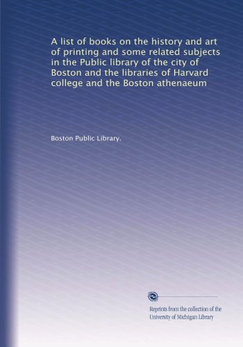 A list of books on the history and art of printing and some related subjects in the Public library of the city of Boston and the libraries of Harvard college and the Boston athenaeum