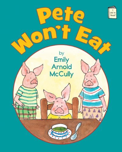 Pete is having a meal with his pig family, but he does not want to eat the green slop his mother serves. Everyone urges him to at least try it but he refuses. So he ends up sitting at the table for a long time. Motherly guilt (and a sandwich) combine with him testing the slop and discovering its good. All is well. This is an easy-reader with lots of repetition and flowing, friendly illustrations in simple McCully style. There's nothing wrong with the book, and it will attract those beginning readers. Still, it is extremely slight. I expect more from this author.