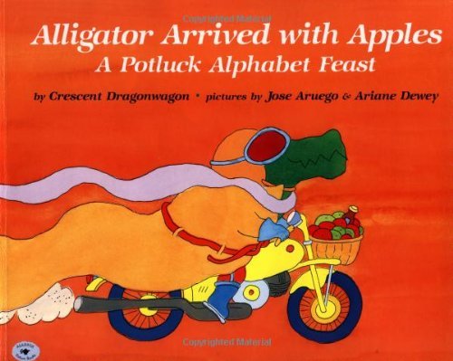 Great book about animals such as an alligator with apples going to a potluck alphabet feast. Each animal brings food that matches their name. It is very well illustrated.