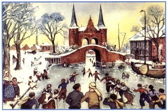 Chosen as a Newbery Honor Book in 1935 - the other titles to be so honored that year include Elizabeth Seeger's The Pageant of Chinese History and Constance Rourke's Davy Crockett, while the medal winner was Monica Shannon's Dobry - this delightful tale opens one cold January morning in the small Dutch village of Elst, in the province of Friesland. Nine-year-old twin siblings Evert and Afke had been longing for snow, and their wish had been granted in the night. The delights didn't end there however, as they soon learned at school, where Teacher informed them that he had permission to take the entire class on an all-day skating trip to the nearby town of Snaek. The day itself provided an entertaining series of experiences and adventures, from drinking hot cocoa at one of the booths set up along the canals, to seeing a real artist at work, painting a winter scene. When Evert fell through the ice, shy Simon came to his rescue, winning the admiration of all. But it was only when he joined Evert, Jan and Okke in their misadventure in the church bell tower, once the class had arrived in Snaek, that he truly cemented his friendship with the more popular Evert. After much excitement, the class finds its way back to Elst, having spent a joyful day on skates...