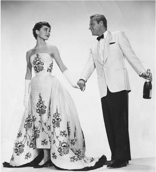 Audrey Hepburn with William Holden in Sabrina, 1954. She’s wearing the exquisite Givenchy gown, for which he received no credit, but certainly helped Edith Head win her Oscar.