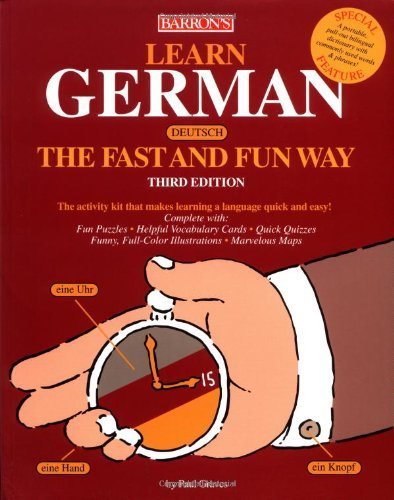Updated with helpful facts and tips for international travelers, this new third editions of Learn German the Fast and Fun Way is suitable as language teaching book for adults as well as for older children. It instructs beginners in the basics of reading, writing, understanding, and speaking German. The book lightens language-learning routines with cartoon-style illustrations, language games, and puzzles. A set of vocabulary flashcards and a small staple-bound bilingual dictionary booklet are bound into the book's spine and can be easily removed for supplementary use.