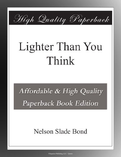 Lighter Than You Think is presented here in a high quality paperback edition. This popular classic work by Nelson Slade Bond is in the English language, and may not include graphics or images from the original edition. If you enjoy the works of Nelson Slade Bond then we highly recommend this publication for your book collection.