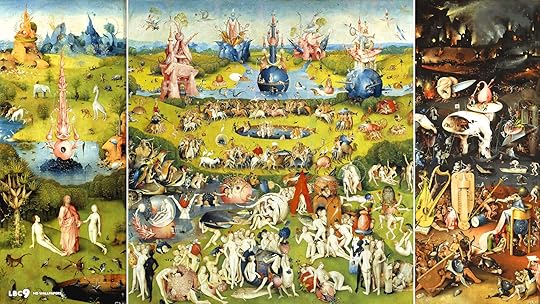 The middle panel of Hieronymus Bosch’s triptych, The Garden of Earthly Delights – If the tattoo artist also needled the left panel and right panel on two other willing subjects, in all likelihood, museum curators would insist all three of us tour together so the entire triptych could be placed on display.