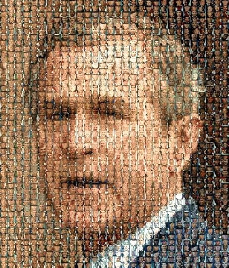 Graphic Designer/Artist Joe Wezorek’s picture of 670 faces of soldiers who lost their lives in Iraq during George W. Bush’s war - I wouldn't want to carry such a powerful political statement around on my back.