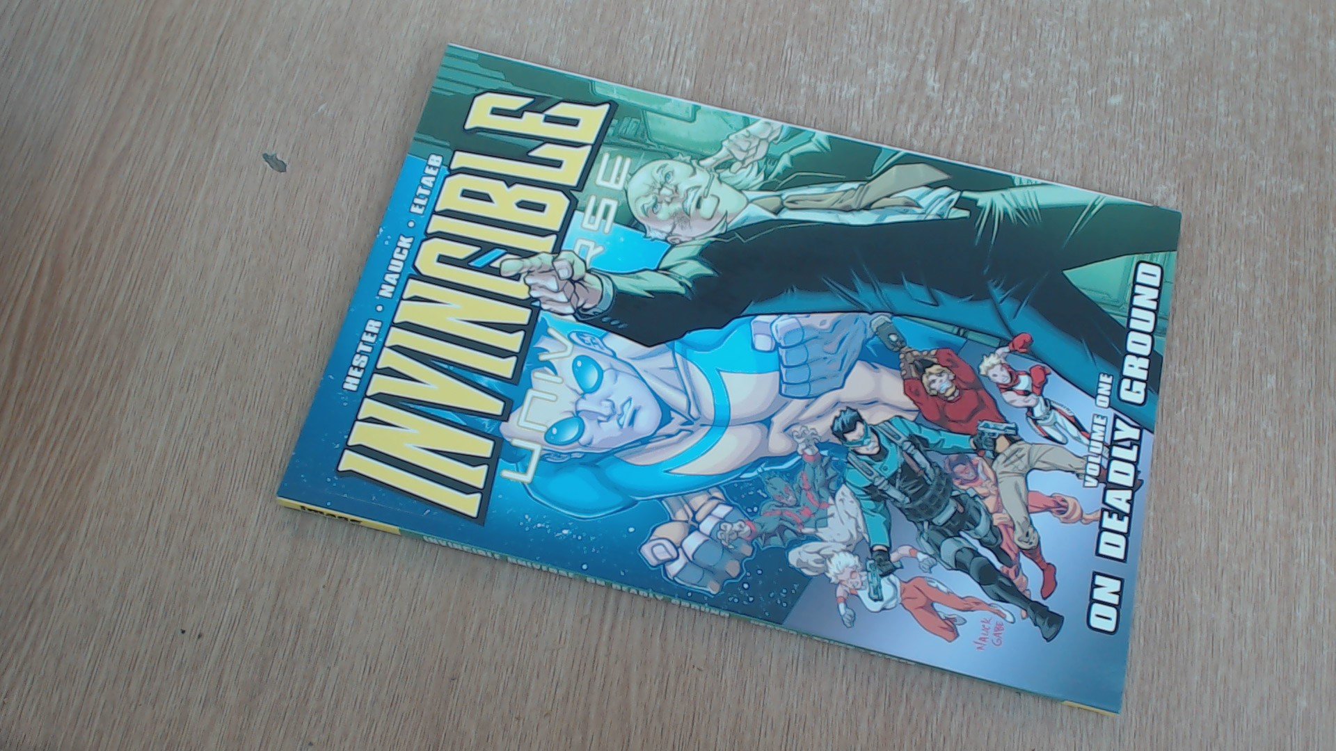 Invincible Universe Vol. 1 On Deadly Ground collects issues 1-6 written by Phil Hester with art by Todd Nauck.