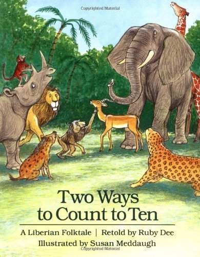 Actress and activist Ruby Dee made her children's book debut with Two Ways to Count to Ten: A Liberian Folktale, which was published in 1988, and which was illustrated by Susan Meddaugh, who three years before did the artwork for Verna Aardema's wonderful Bimwili and the Zimwi: A Tale from Zanzibar . I enjoyed this tale, even though I could see where it was headed——from the beginning. After all, folklore often relies on tried and true themes and story lines, and while a surprise ending can be fun, a predictable one is no detriment. The lesson to be learned—that thinking outside of the box and approaching problems from a different perspective is an important skill—is well worth considering. The accompanying artwork was colorful and engaging. I do wish some source has been given for the tale, so I could track down the original, or possibly other tellings, but leaving that aside I would recommend this to young folklore enthusiasts.