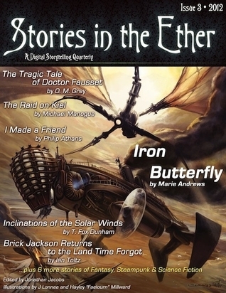 Iron Butterfly, by Marie Andrews Brick Jackson Returns to the Land that Time Forgot, by Ian Toltz Unfamiliar Territory, by Gary Watkins Cruise of the Lightship Venture, by Sevan Taylor The Raid on Kiel, by Michael Manogue I Made a Friend, by Philip Athans Eternal Memories, Kevin P. Kilburn Inclinations of the Solar Winds, T. Fox Dunham The Tragic Tale of Doctor Fausset, by O.M. Grey Pine Rock, by Daniel Mullen Steady and True, by Michael Burnside The Patience of Virtue, by David D'Alessio With illustrations by J Lonnee and Hayley Millward.