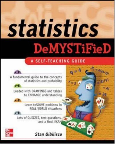 Popular science/hobbyist writer Stan Gibilisco covers every important aspect of basic (algebra-based) statistics, notation and jargon, describing, tables, graphs, randomness and uncertainty, probability principles, distributions, obtaining and interpreting data, correlation, causation, and more. You'll be able to learn more in less time, evaluate your areas of strength and weakness and reinforce your knowledge and confidence.