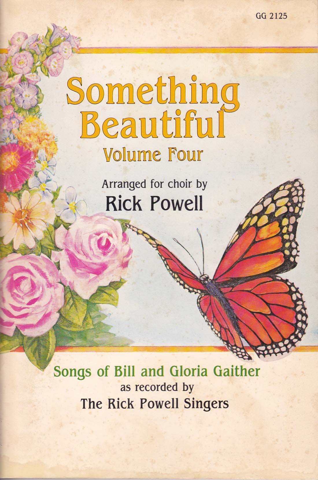 Book of choir music, Volume 4. Complete score, vocal score and guitar chords. Songs are Precious Jesus, Reaching, I Can't See Me Serving Anybody But Jesus, Praise Be To Jesus, It Is Finished, The World Didn't Give It To Me, This Is The Time I Must Sing, More Of You, It's Beginning To Rain, and I Am Loved. 1980. All songs of the Gaithers, arranged by Rick Powell.