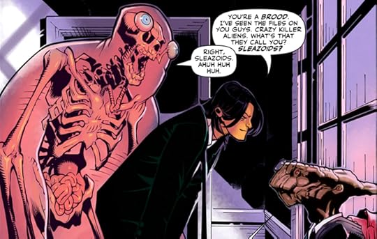 If not for the last story, which was a blast, I'd have to end this review on a slightly sour note. The adventures and battles were much more to my liking there, and a little sweetness at the end is all we really needed. The exchange between Quire and Broo in the middle of the last chapter was perfect. The appearance of Abigail Brand always has me grinning - she's a character that deserves a *lot* more exposure than she's gotten, with her strength, total sarcasm and willingness to take on the dirtiest job on (off) Earth.