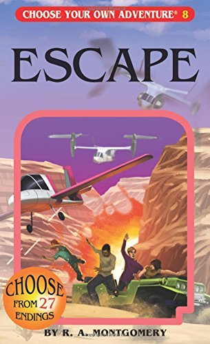 This book is more disciplined than most R.A. Montgomery entries in the first twenty classic Choose Your Own Adventures. The premise is simple: complete your escape from Dorado to Denver. You don't make it all the way in every good ending, but as long as you're safe from immediate execution, you've accomplished your goal as far as this book is concerned. Reforming the broken United States is another matter, one you'll learn more about in Beyond Escape!, Choose Your Own Adventure book sixty-one. As for Escape, there could be more surprises and narrative variety, but it may be Montgomery's second-best book to this point in the series, behind The Race Forever. Pull Escape off the shelf when you want fast action without much baggage.