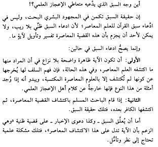 ولا يعني هذا خلو القرآن من الإشارة إلى حقائق علمية. ولكن منهجية الإعجازيين لم تكن منطلقة من فهم كتاب الله، بقدر ما هي بحث وتوصيل بين متشابهين كما يظنون.