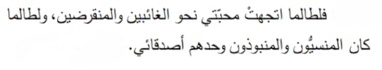 ظلمتُ الناس والأشياء والحياة. هؤلاء كانوا شيئاً آخر غير ما ظننتُ وما أمِلتُ، وكان عليَّ أن أعرف ذلك. كان عليَّ أن أعرفهم كما هم، لا كما أرغب، وأن أحبَّهم.